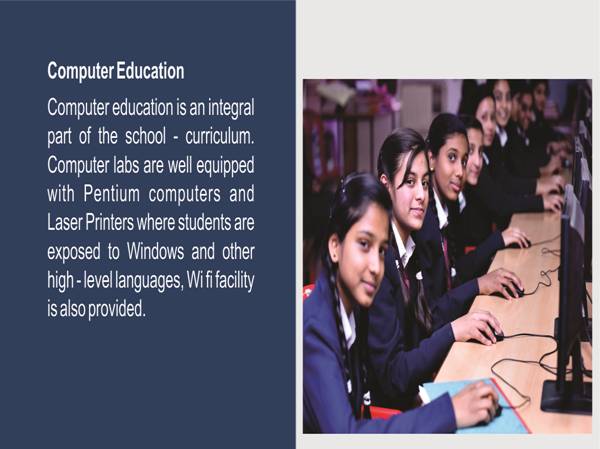 Computers are an integral part of the academic curriculum so practical and theory classes are held every week. School has a well equipped Computer lab with latest softwares and technologies. These days computers are the best friend of children. Computers are also an aid to others subjects and provide an enjoyable exposure through interactive CD ROMs. The entire school is connected with LAN for effective communication and for the smooth functioning of the various departments of the school.